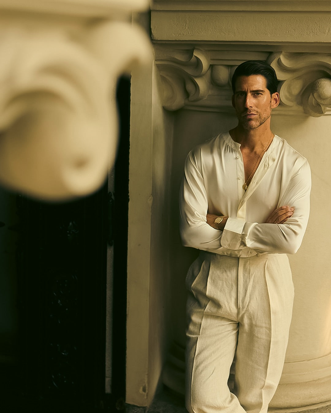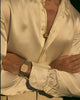 Cream Silk Band Collar Shirt